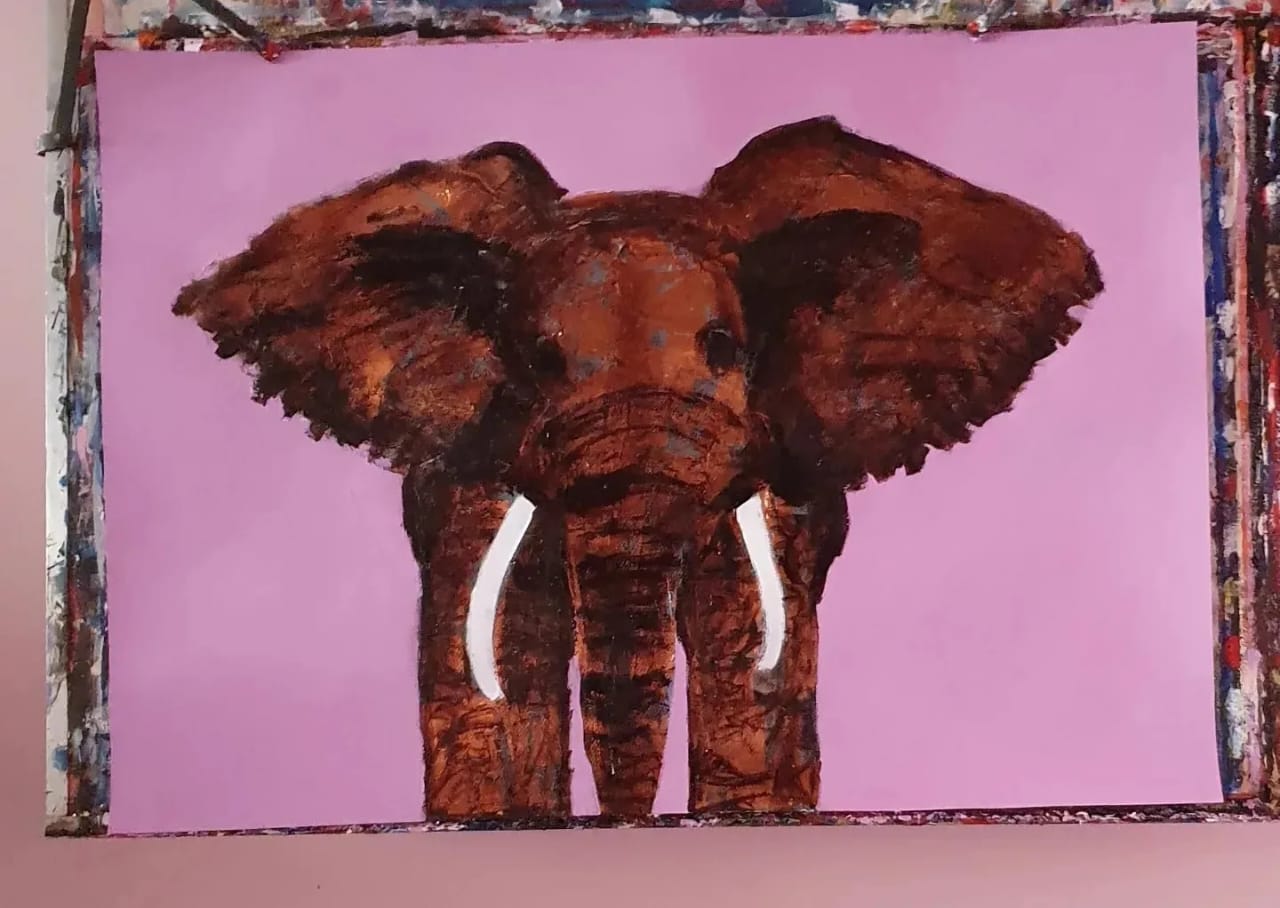 Tinta acrílica, folha de cobre e betume em papel