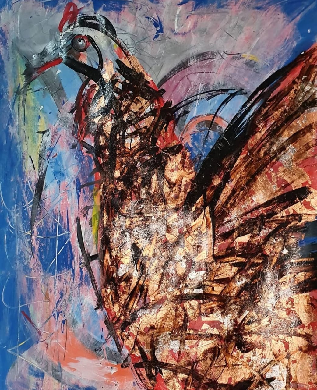 Medidas: 100 x 70 cm Tinta acrílica, tinta à base d’água, folha de ouro, betume e lápis em papel