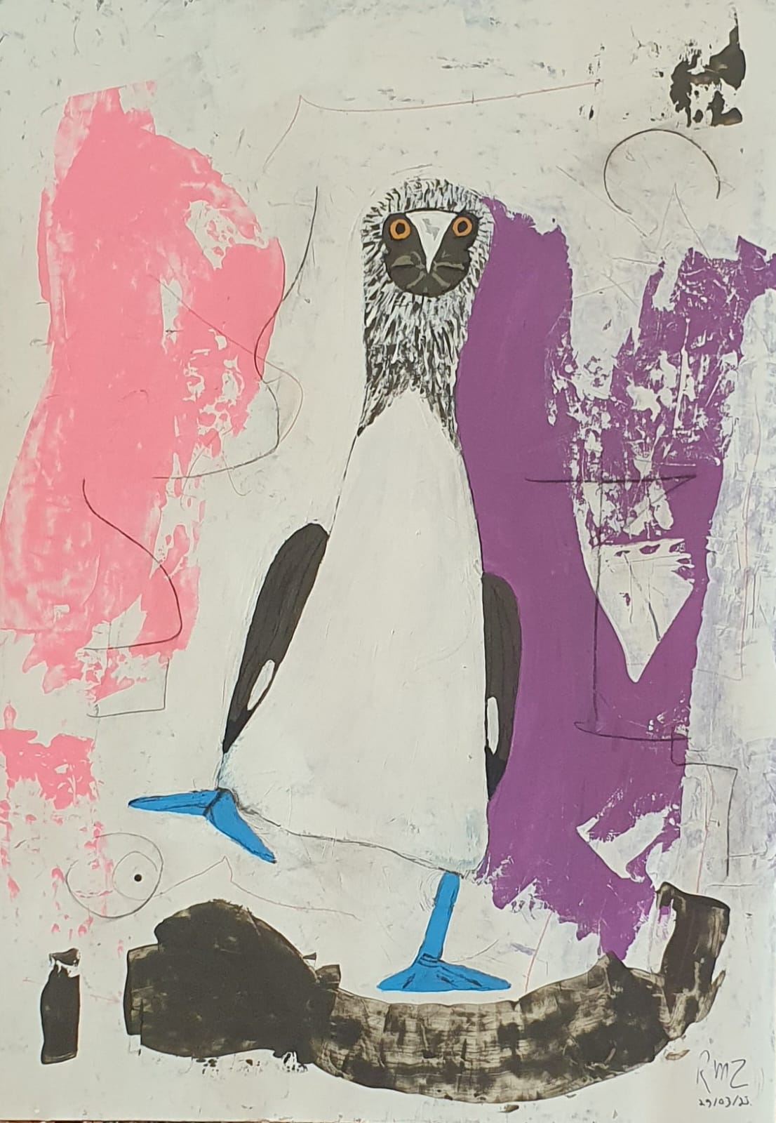 Tinta acrílica, tinta à base d’água e lápis em papel